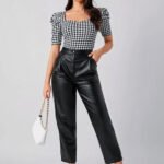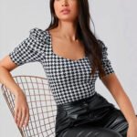 Gufrina Chic Women’s Half Sleeve Shirt Collar Fort Open Top Co-Ords Set – Modern Geometric Print