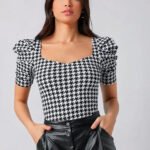 Fashion Women’s Sweet Heart Neck Balloon/Puff Bishop Sleeve Elegant Casual Tee Top, 23″ inches (BZF-Top Mantos-01)