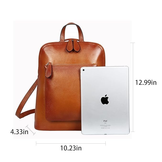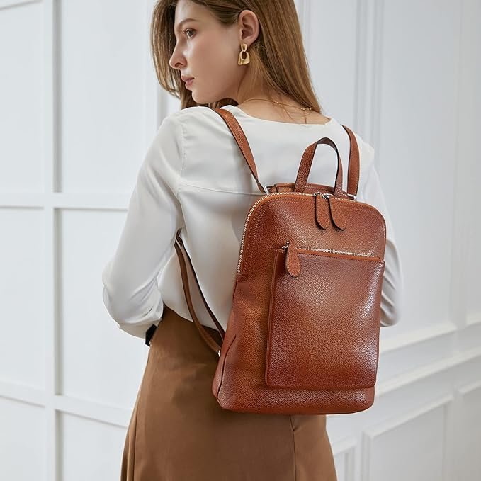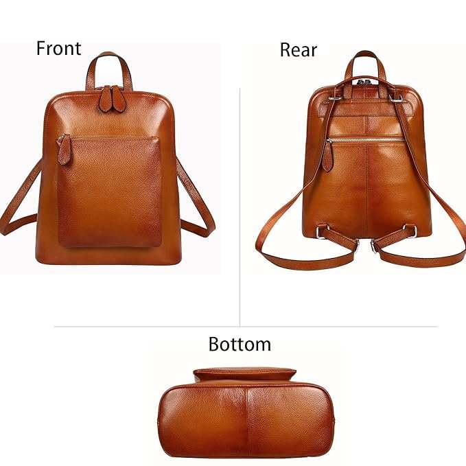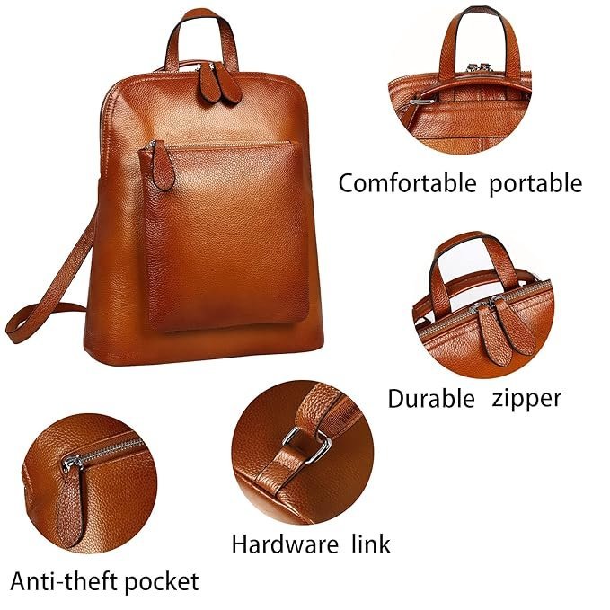 - [Internal Structure]: The genuine leather women’s backpacks stay organized with 1 generous interior zippered pocket, 1 invisible pocket, phone slot, and card slot. Perfectly sized for your mobile phone, wallet, cosmetics, IPAD, umbrella, and other daily essentials.