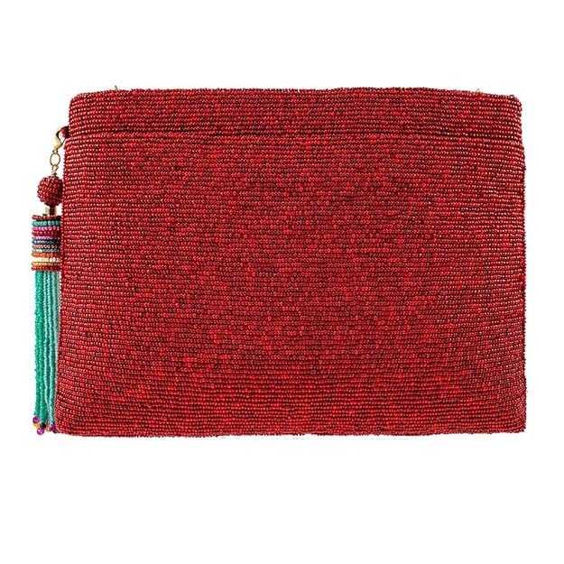 • Features – Removable crossbody chain strap, zipper closure, inside pocket, back pocket, removable beaded tassel, fits a cell phone