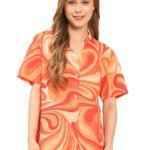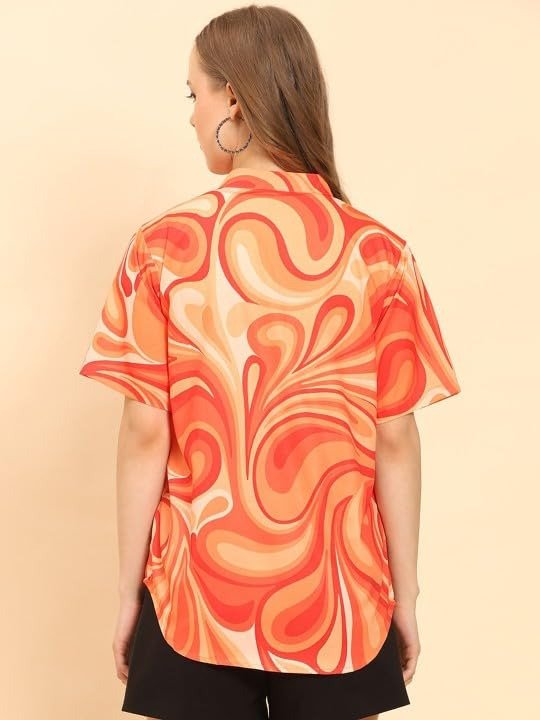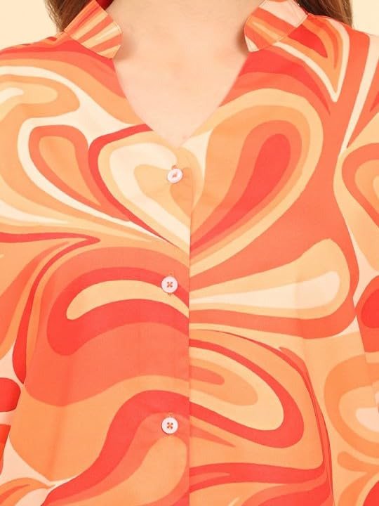 - ✔ Elegant Printed Shirt for Women – Crafted from premium cotton fabric, this stylish orange mandarin collar shirt offers all-day comfort and breathability, perfect for casual and formal wear